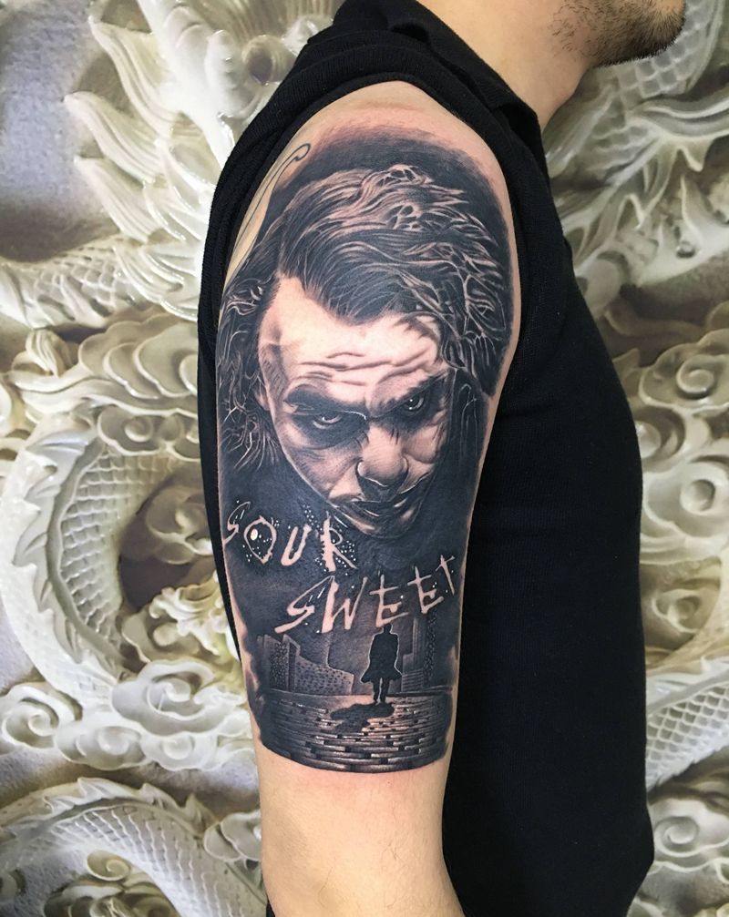 当前位置: 首页 >浙江省宁波市纹身店-帝玖刺青纹身图案>小丑纹身图片_手臂欧美写实纹身图案