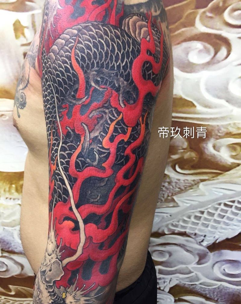 • T网红王老大花腿龙纹身图片_腿部新传统纹身图案