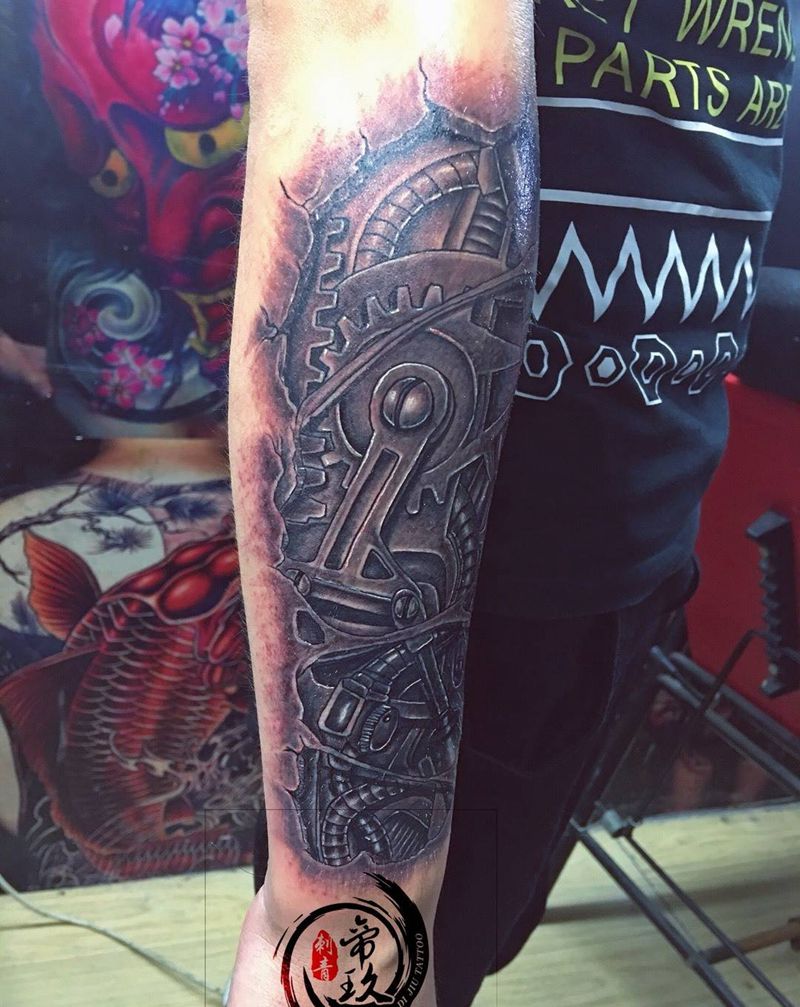当前位置: 首页 >浙江省宁波市纹身店-帝玖刺青纹身图案>小臂机械遮盖老纹身纹身图片