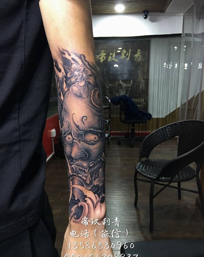 当前位置: 首页 >浙江省宁波市纹身店-帝玖刺青纹身图案>般若小花臂纹身图片