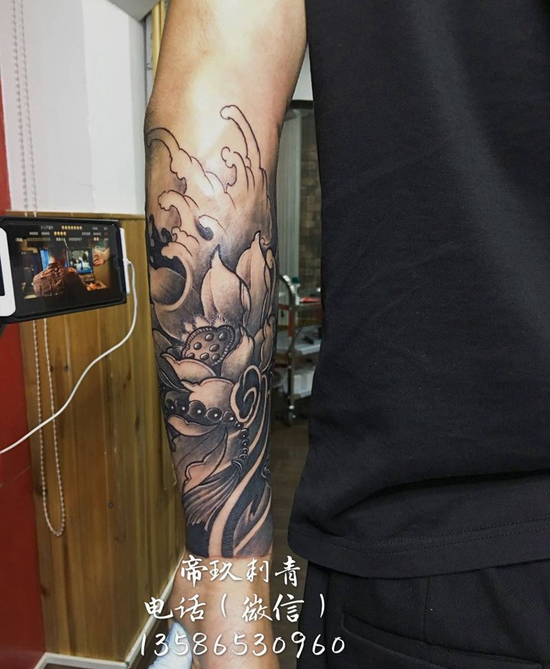 一组15张莲花纹身手