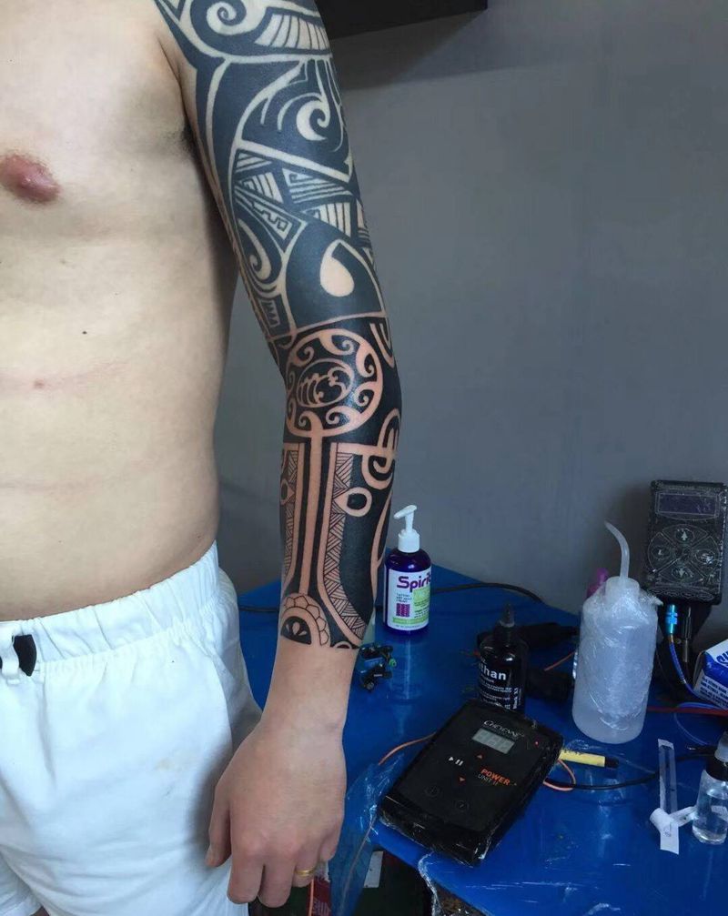 当前位置: 首页 >浙江省宁波市纹身店-帝玖刺青纹身图案>玛雅图腾拼接花臂纹身图片