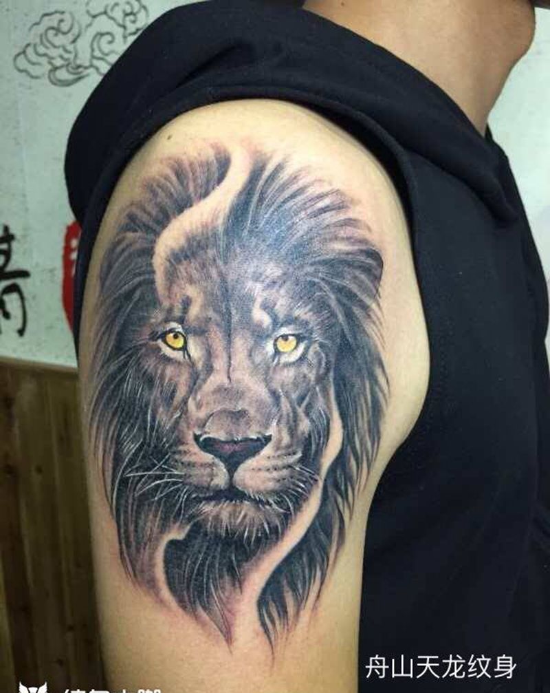 当前位置: 首页 >浙江省宁波市纹身店-帝玖刺青纹身图案>大臂狮子纹身图片