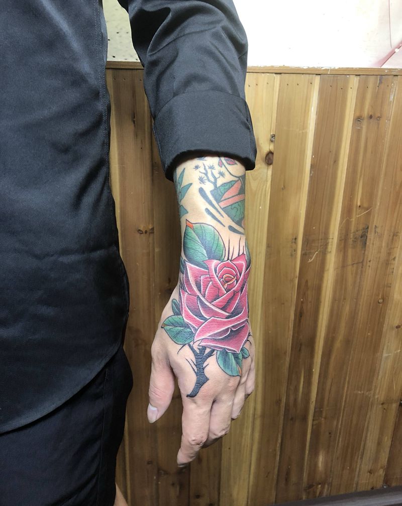 当前位置: 首页 >浙江省宁波市纹身店-帝玖刺青纹身图案>手背玫瑰纹身图片_手部New School纹身图案