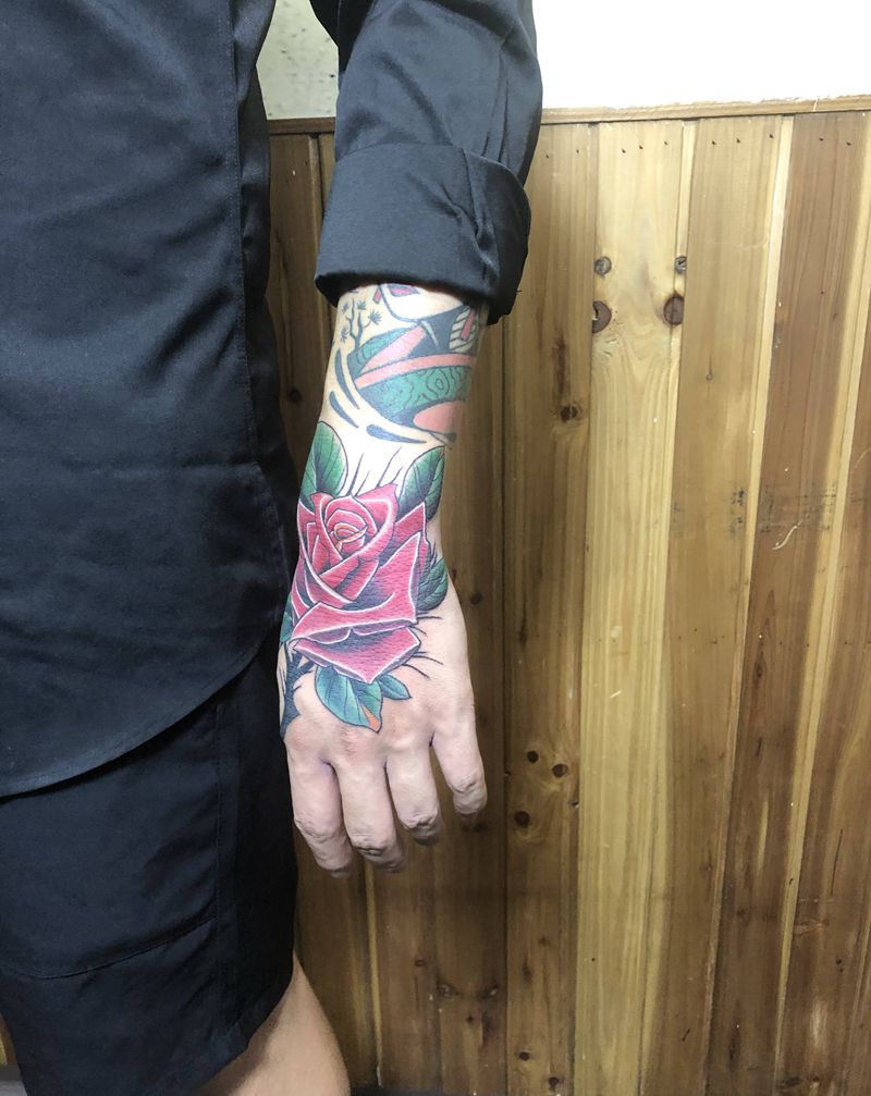 当前位置: 首页 >浙江省宁波市纹身店-帝玖刺青纹身图案>手背玫瑰纹身图片_手部New School纹身图案