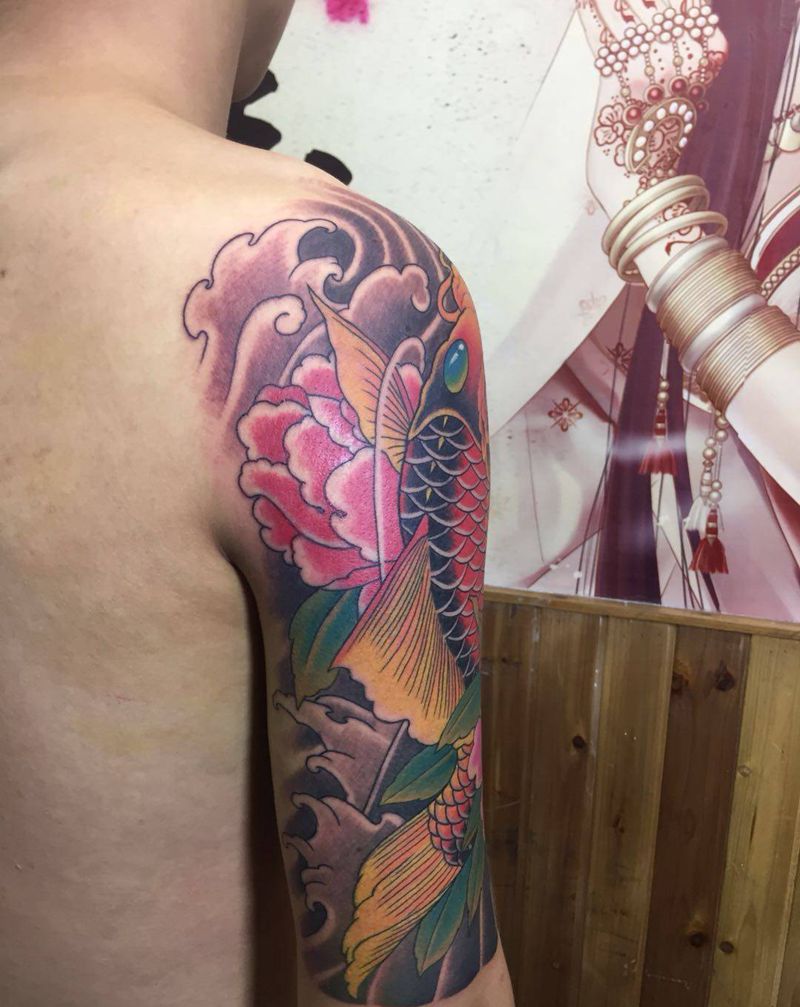 当前位置: 首页 >浙江省宁波市纹身店-帝玖刺青纹身图案>大臂招财鲤鱼纹身图片_手臂新传统纹身图案