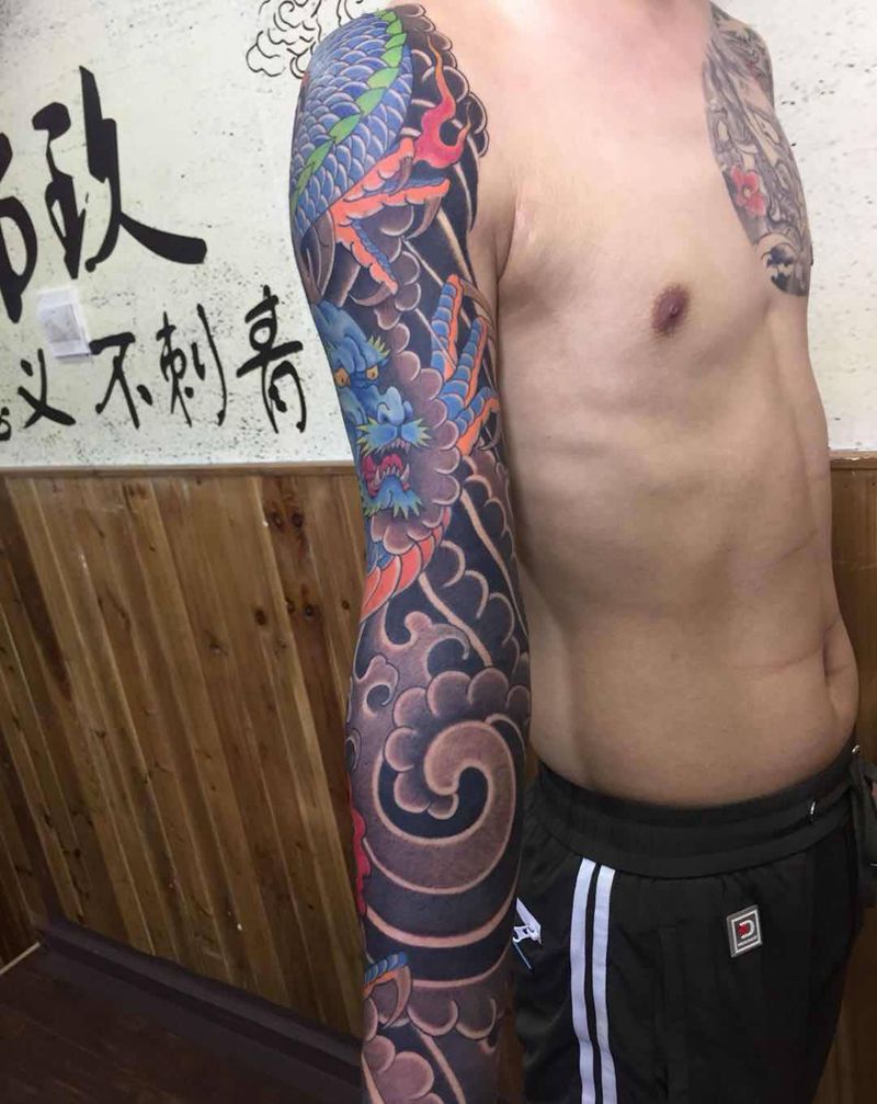 当前位置: 首页 >浙江省宁波市纹身店-帝玖刺青纹身图案>传统花臂-龙纹身图片_手臂新传统纹身图案