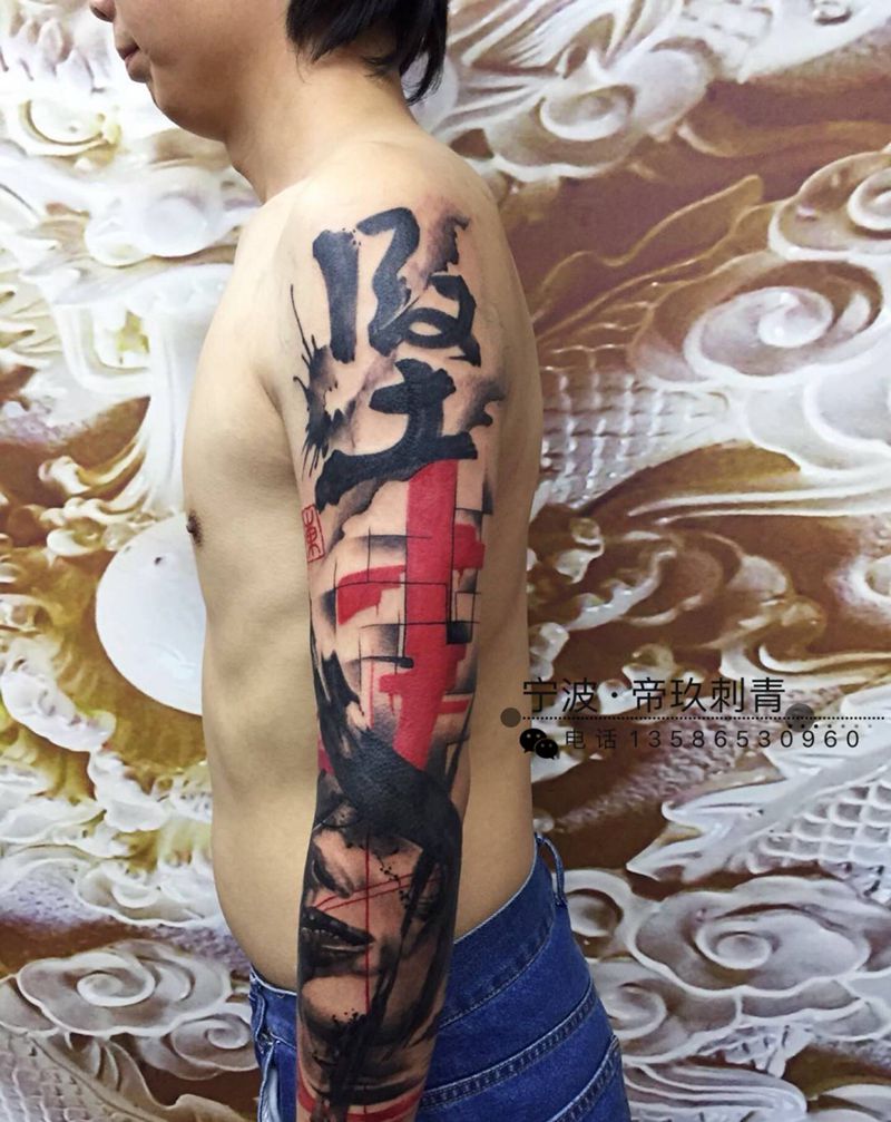 当前位置: 首页 >浙江省宁波市纹身店-帝玖刺青纹身图案>涂鸦花臂纹身图片_手臂欧美写实纹身图案