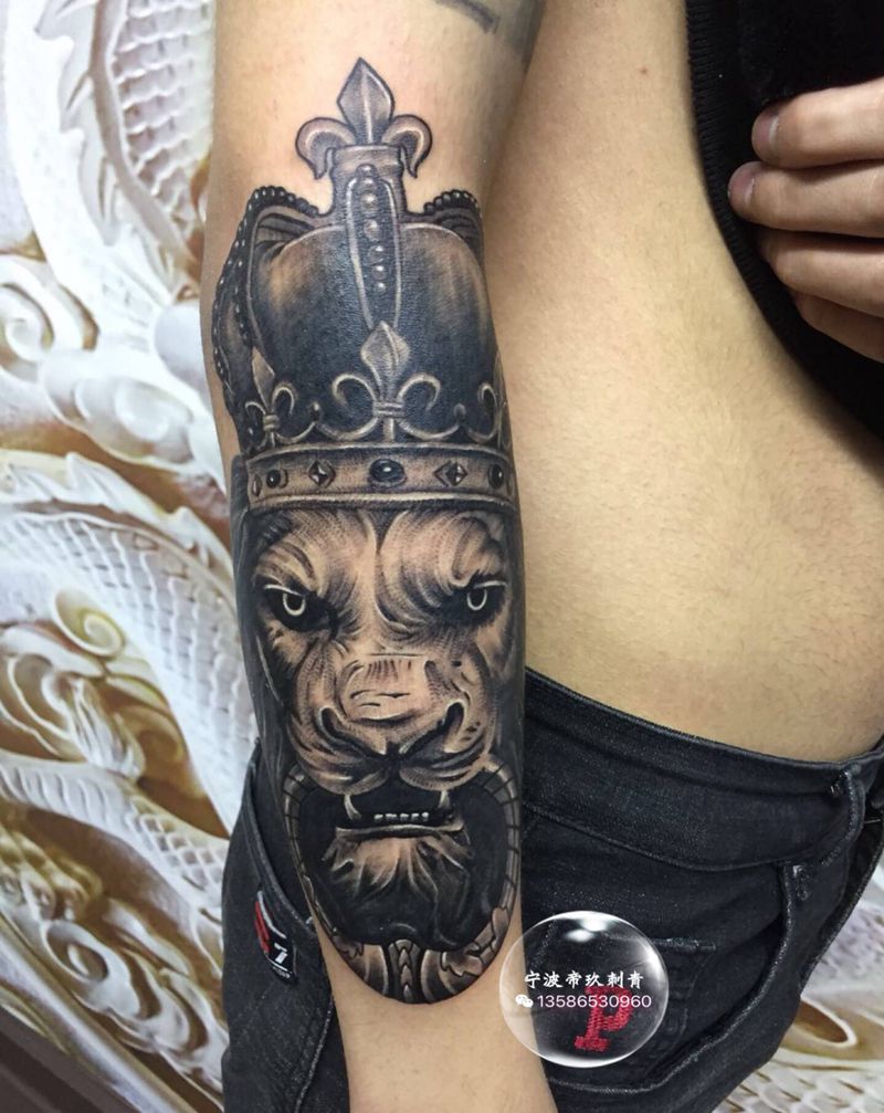 当前位置: 首页 >浙江省宁波市纹身店-帝玖刺青纹身图案>狮子纹身图片_手臂欧美写实纹身图案