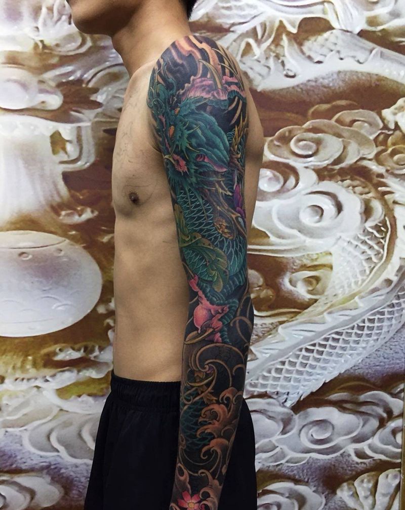 当前位置: 首页 >浙江省宁波市纹身店-帝玖刺青纹身图案>花臂暴力遮盖纹身图片_手臂新传统纹身图案