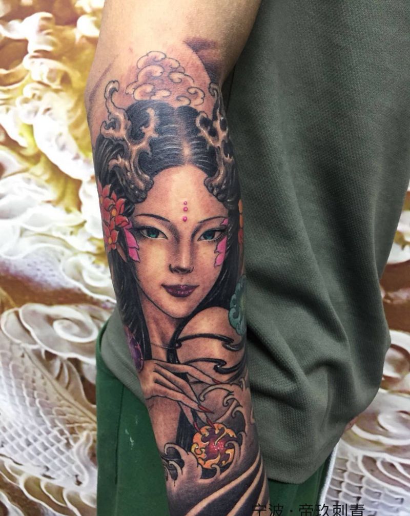 当前位置: 首页 >浙江省宁波市纹身店-帝玖刺青纹身图案>小臂艺妓纹身图片_手臂新传统纹身图案
