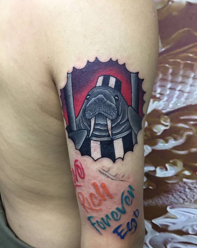 当前位置: 首页 >浙江省宁波市纹身店-帝玖刺青纹身图案>小图拼接纹身图片_手臂New School纹身图案