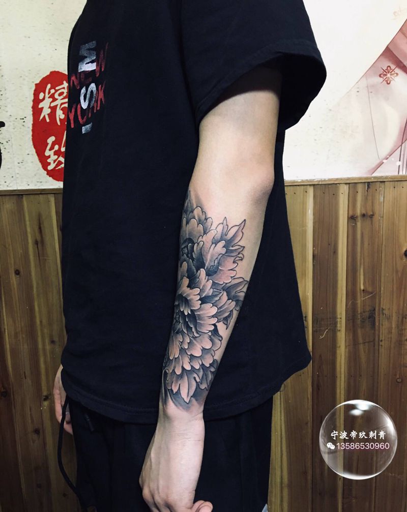 当前位置: 首页 >浙江省宁波市纹身店-帝玖刺青纹身图案>社戏牡丹纹身图片_手臂新传统纹身图案