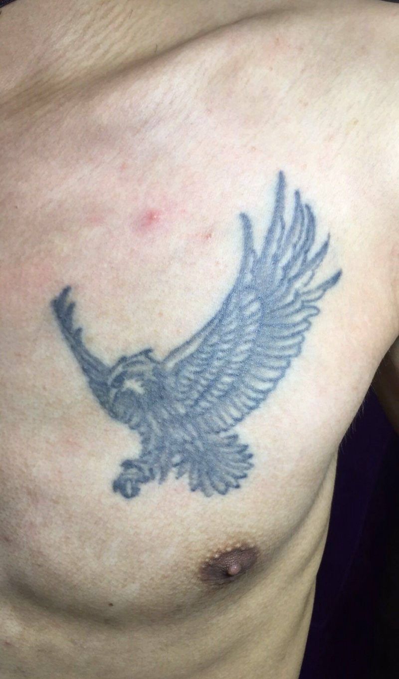 胸口麒麟遮盖纹身图片_胸部新传统纹身图案
