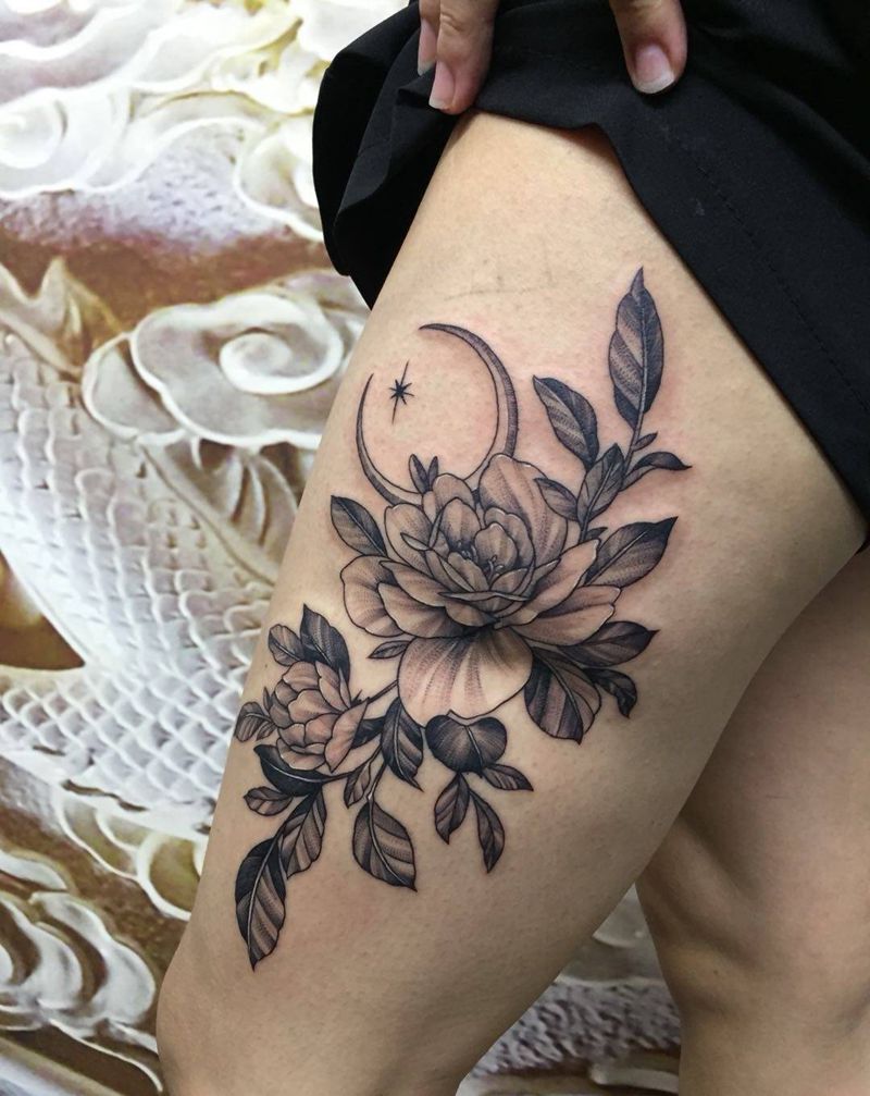 素花遮盖疤痕纹身图片_腿部新传统纹身图案