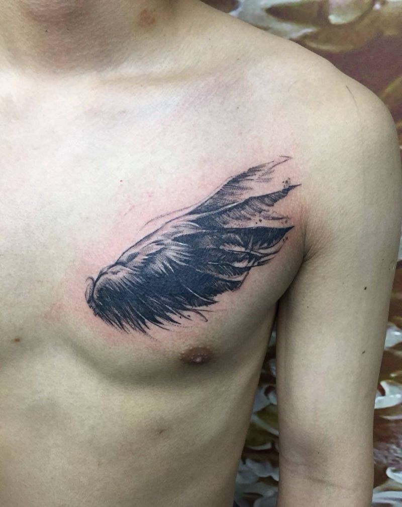 翅膀遮盖纹身图片_胸部新传统纹身图案