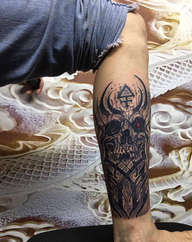 当前位置: 首页 >浙江省宁波市纹身店-帝玖刺青纹身图案>骷髅纹身图片_腿部新传统纹身图案