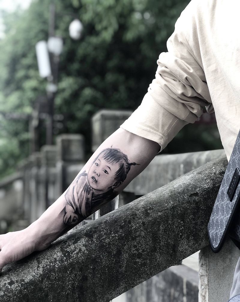 肖像纹身纹身图片_手部手臂水墨欧美写实纹身图案