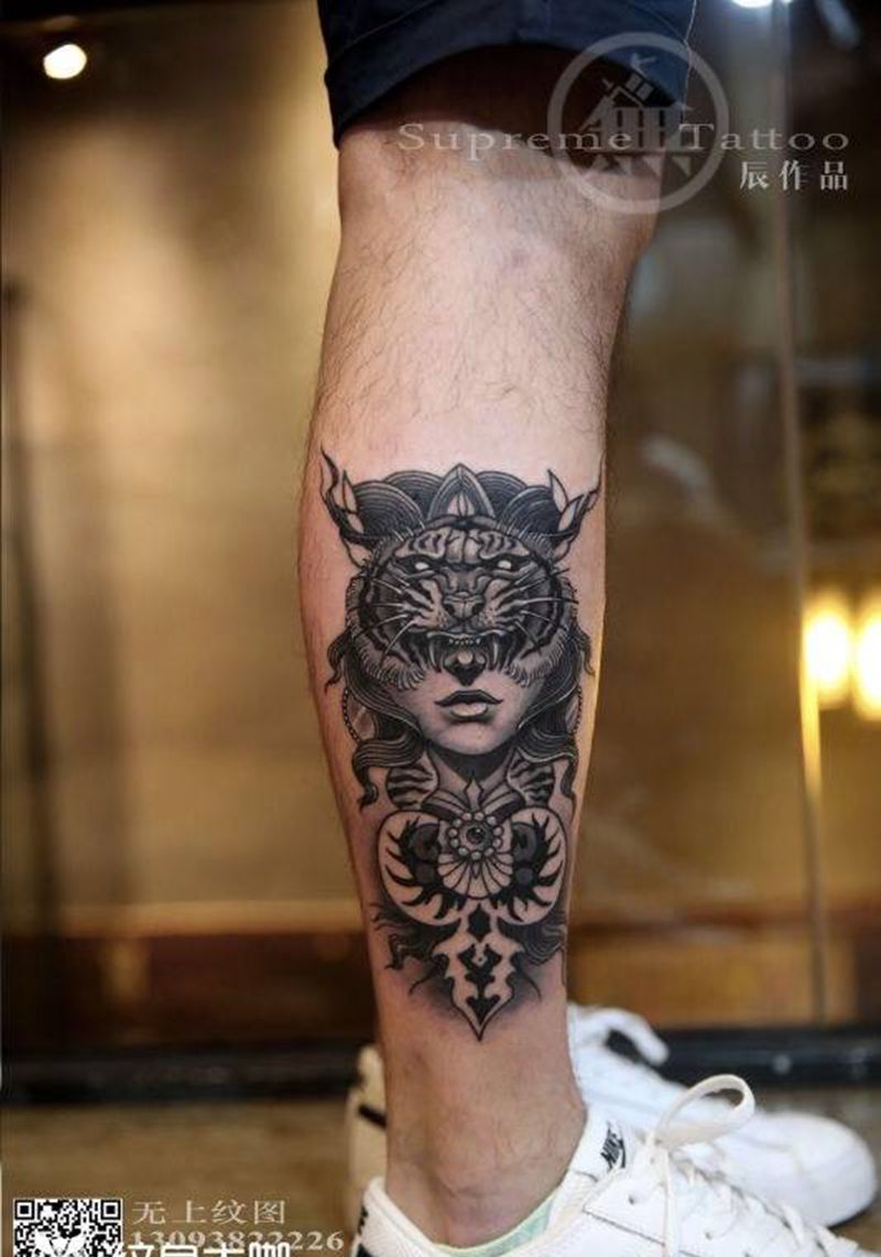 • T网红王老大花腿龙纹身图片_腿部新传统纹身图案