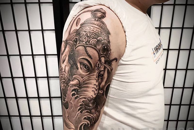 当前位置: 首页 >浙江省宁波市纹身店-百里刺青纹身图案>象神纹身图片_手臂老传统纹身图案