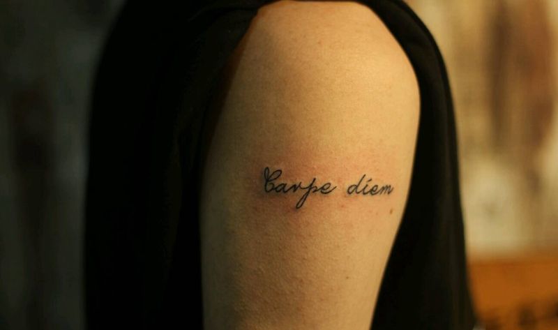 当前位置: 首页 >浙江省温州市纹身店-JMJ刺青工坊纹身图案>情侣及时行乐纹身图片_手臂清新字符情侣成品纹身图案