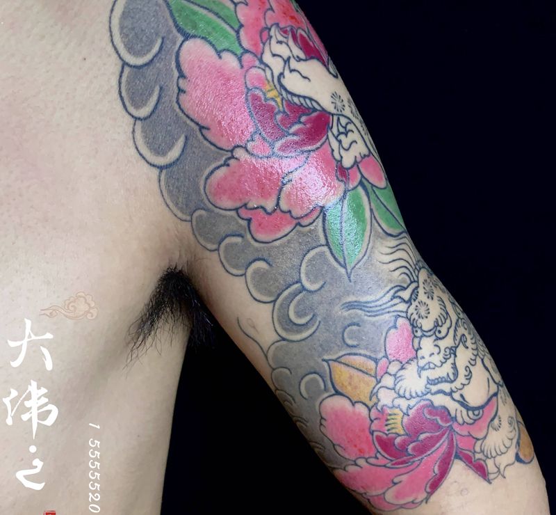 唐狮 日式 老传统 纹身纹身图片_手臂纹身图案