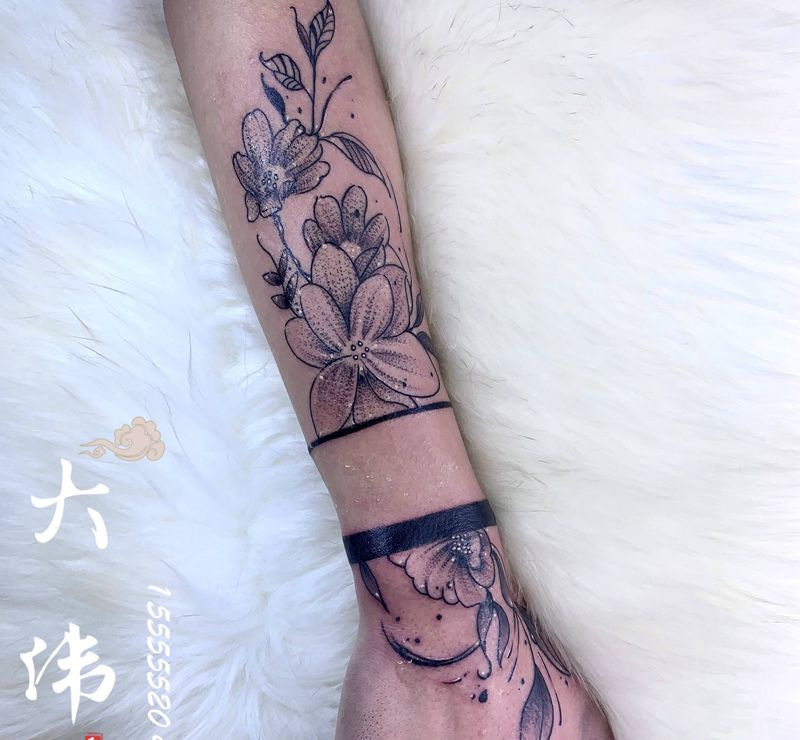 臂环纹身 花纹身 素花 小清新纹身图片_点刺纹身图案