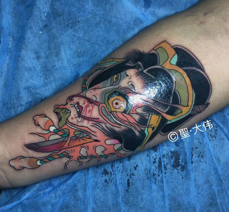 当前位置: 首页 >浙江省宁波市纹身店-初刺青工作室纹身图案>老传统生首纹身18.12.29纹身图片_手臂老传统水彩生首纹身图案