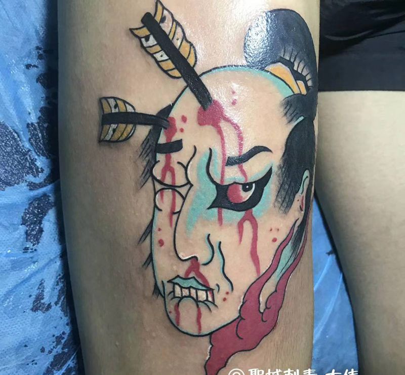 2018.8.20生首纹身纹身图片_腿部新传统纹身图案