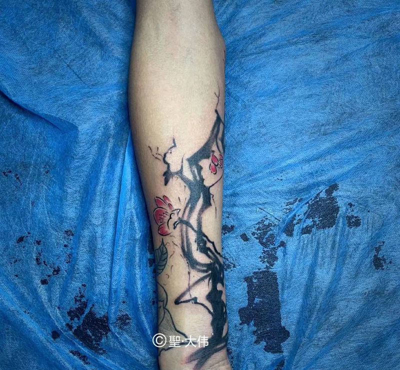 当前位置: 首页 >浙江省宁波市纹身店-初刺青工作室纹身图案>梅花纹身2019.7.29纹身图片_手臂水彩水墨梅花纹身图案
