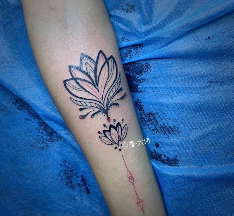 一组15张莲花纹身手