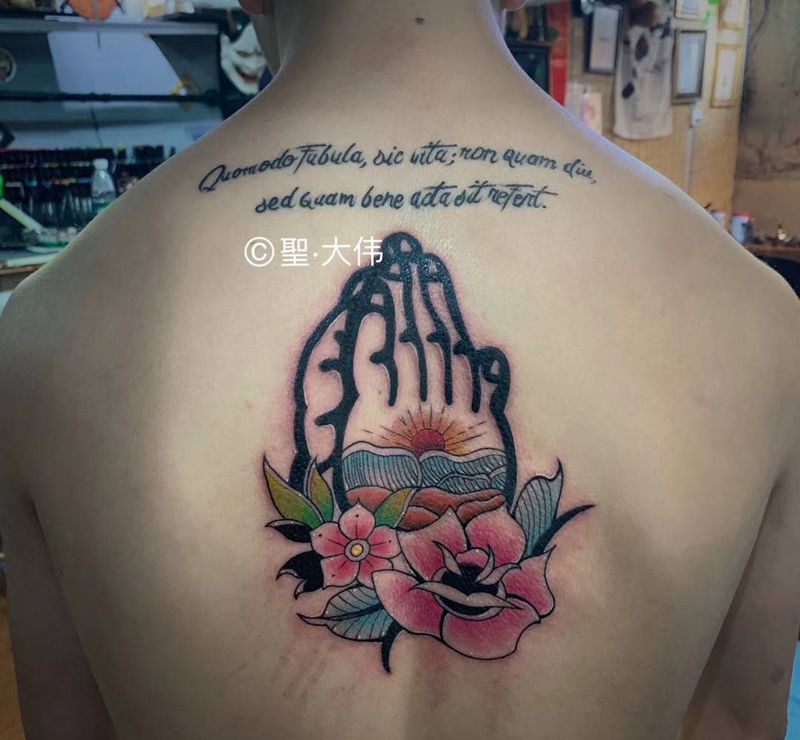 上帝之手 欧美 花纹身图片_背部Old SchoolNew School上帝之手纹身图案