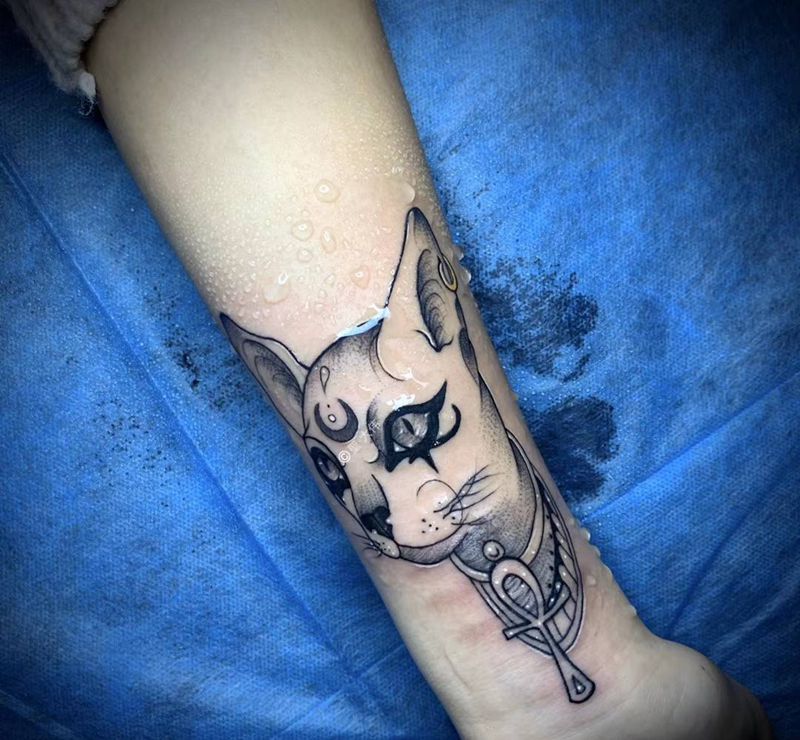 当前位置: 首页 >浙江省宁波市纹身店-初刺青工作室纹身图案>猫纹身纹身图片_手臂小图纹身图案