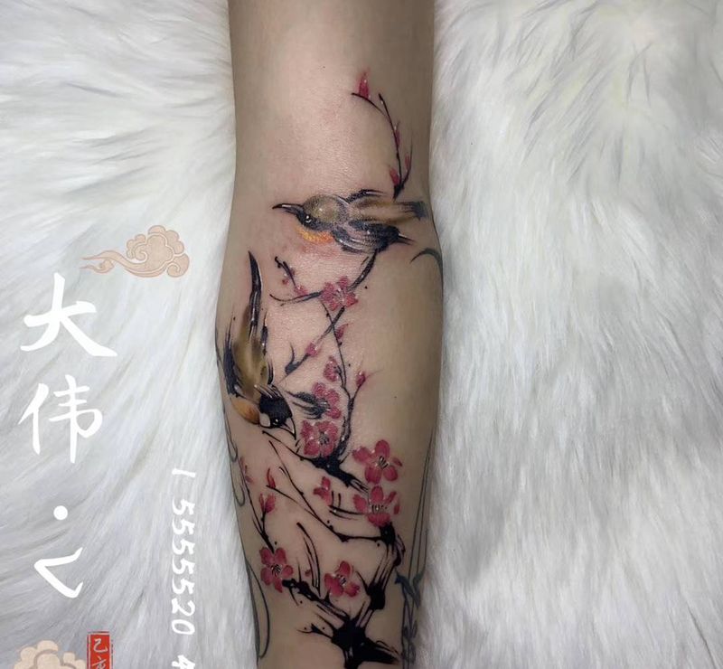 当前位置: 首页 >浙江省宁波市纹身店-初刺青工作室纹身图案>水墨 梅花 和鸟纹身图片_手臂水彩水墨鸟纹身图案