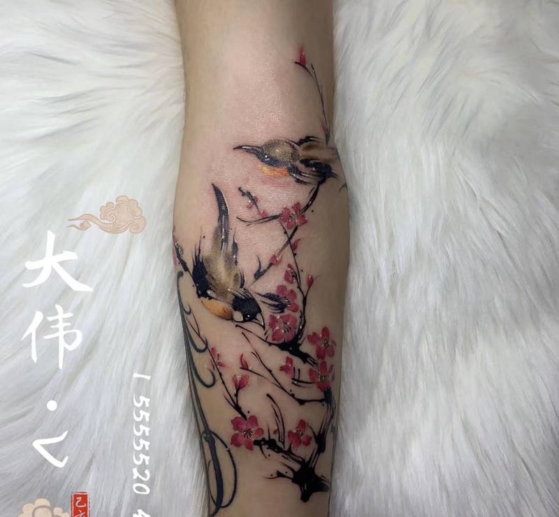 当前位置: 首页 >浙江省宁波市纹身店-初刺青工作室纹身图案>水墨 梅花 和鸟纹身图片_手臂水彩水墨鸟纹身图案