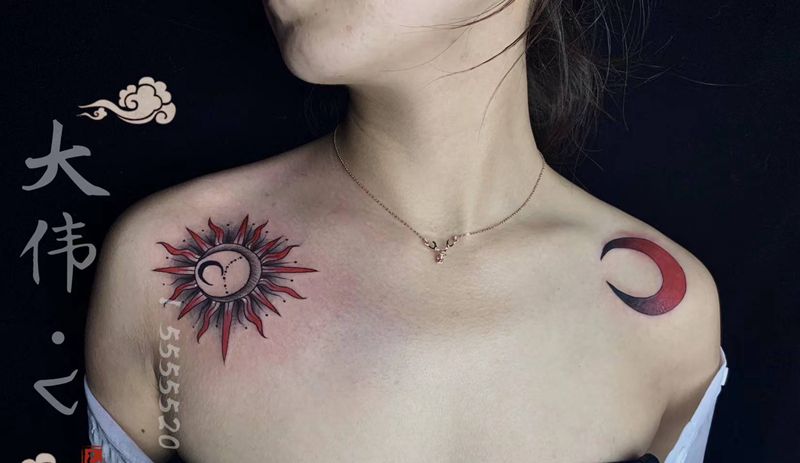 当前位置: 首页 >浙江省宁波市纹身店-初刺青工作室纹身图案>月亮与太阳纹身图片_手臂Old School太阳月亮纹身图案