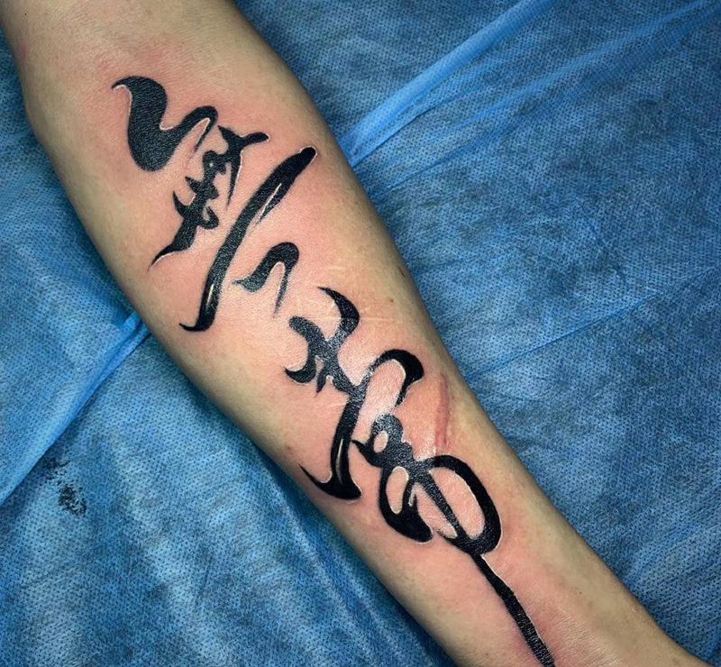 当前位置: 首页 >浙江省宁波市纹身店-初刺青工作室纹身图案>泼墨字纹身 19.4.19纹身图片_手臂水彩水墨字纹身图案