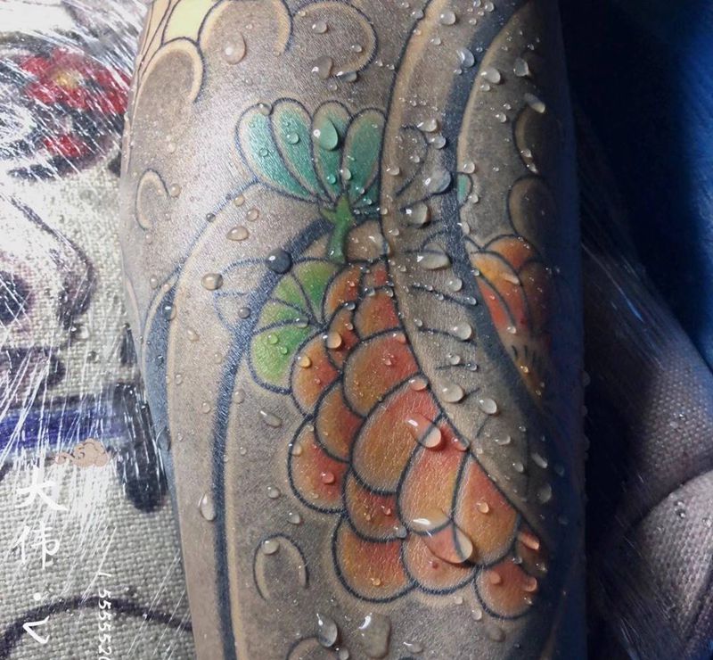 • T网红王老大花腿龙纹身图片_腿部新传统纹身图案