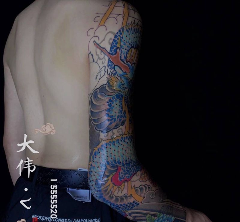 当前位置: 首页 >浙江省宁波市纹身店-初刺青工作室纹身图案>龙纹身图片_手臂老传统龙纹身图案