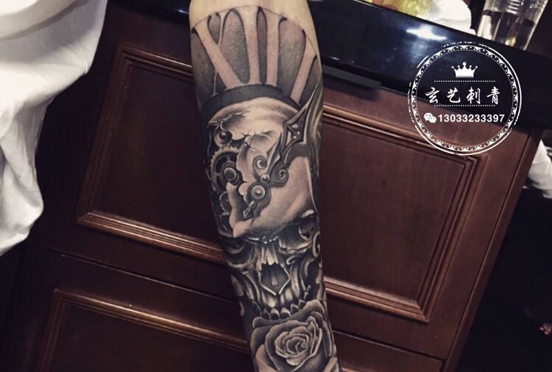 当前位置: 首页 >浙江省宁波市纹身店-南康玄艺刺青纹身图案>小手臂骷髅纹身图片_手臂欧美写实纹身图案