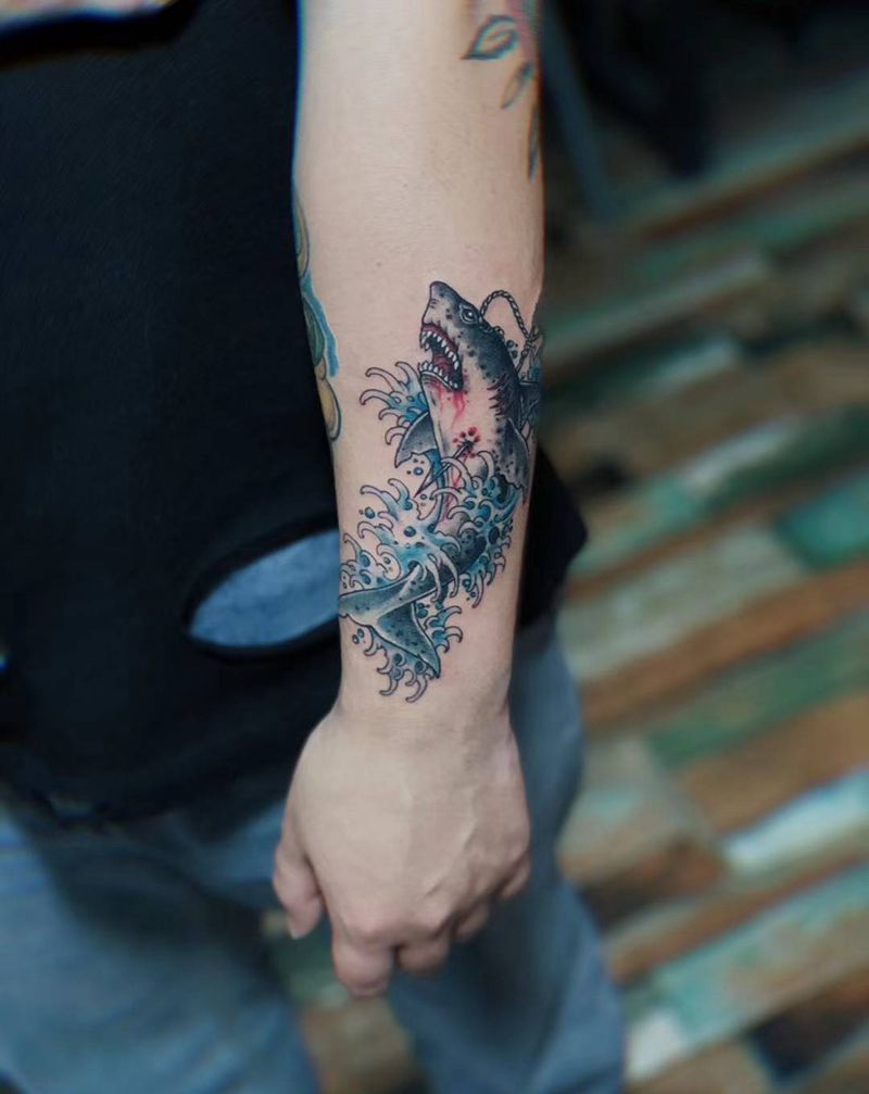 当前位置: 首页 >浙江省温州市纹身店-温州阿强纹身纹身图案>鲨鱼纹身图片_Old School新传统纹身图案