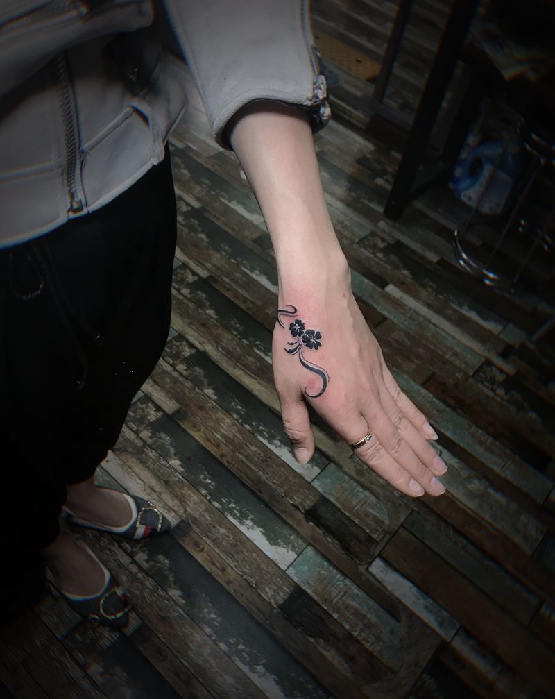 • 手背潮流时尚的玫瑰花眼睛纹身图案