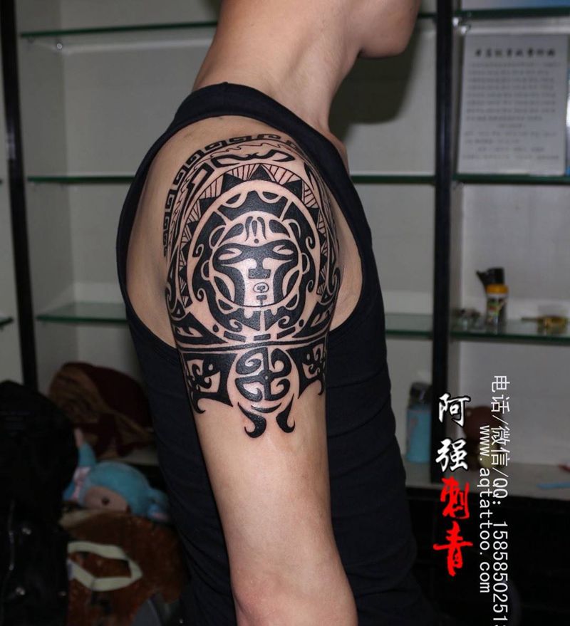 • 纹身吧推荐的披肩图腾半胛纹身图案作品展示