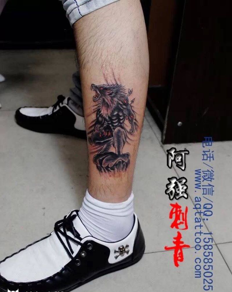 • T网红王老大花腿龙纹身图片_腿部新传统纹身图案