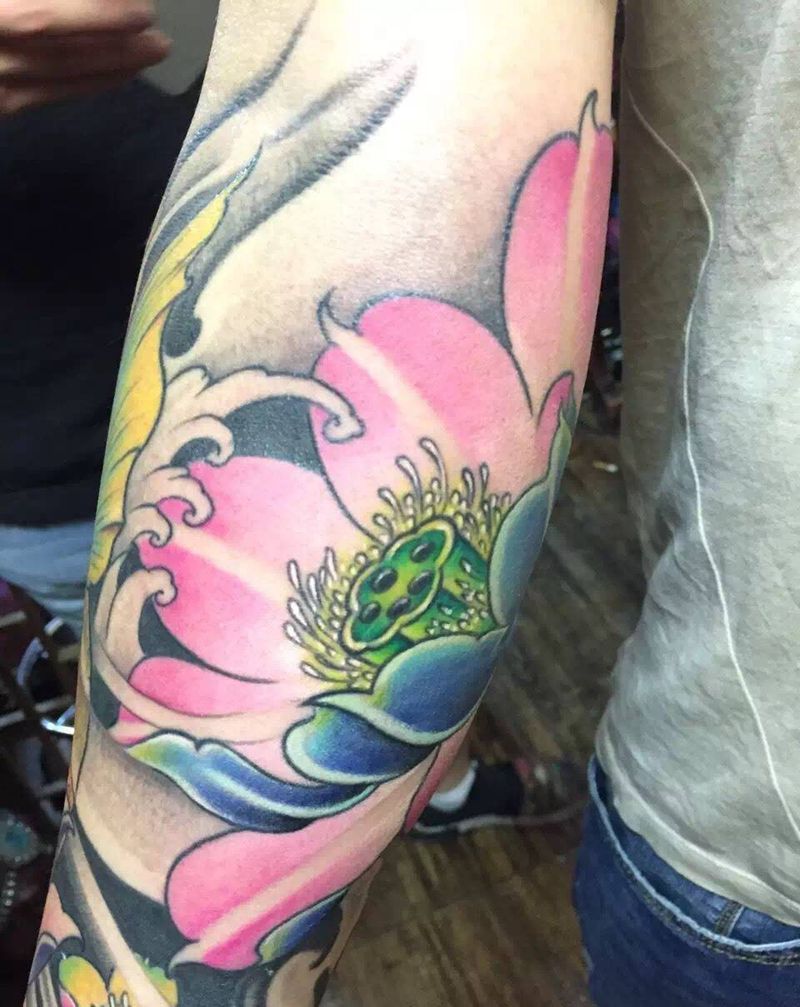 一组15张莲花纹身手