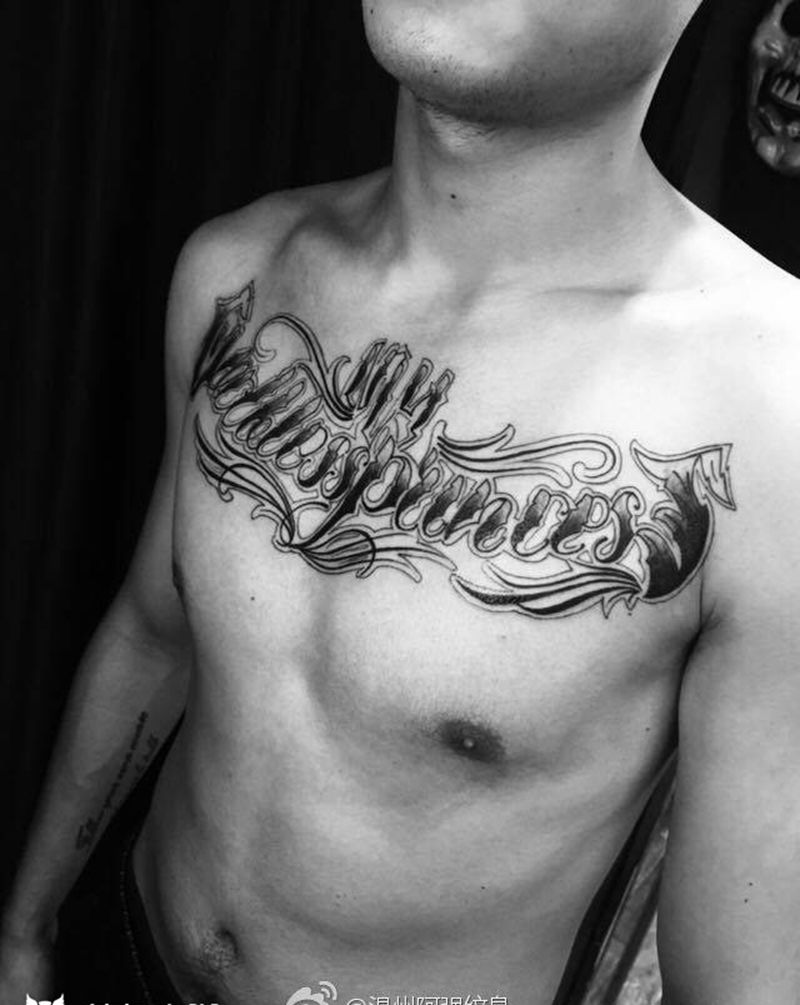 花胸纹身纹身图片_成品手稿胸部传统字符原创纹身图案