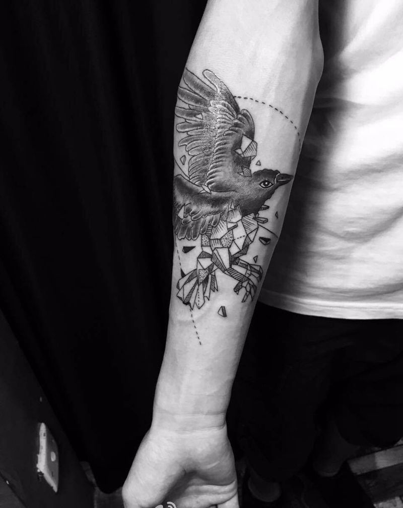 小臂几何乌鸦纹身纹身图片_成品几何纹身图案