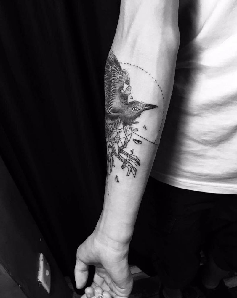 当前位置: 首页 >浙江省温州市纹身店-温州阿强纹身纹身图案>小臂几何乌鸦纹身纹身图片_成品几何纹身图案