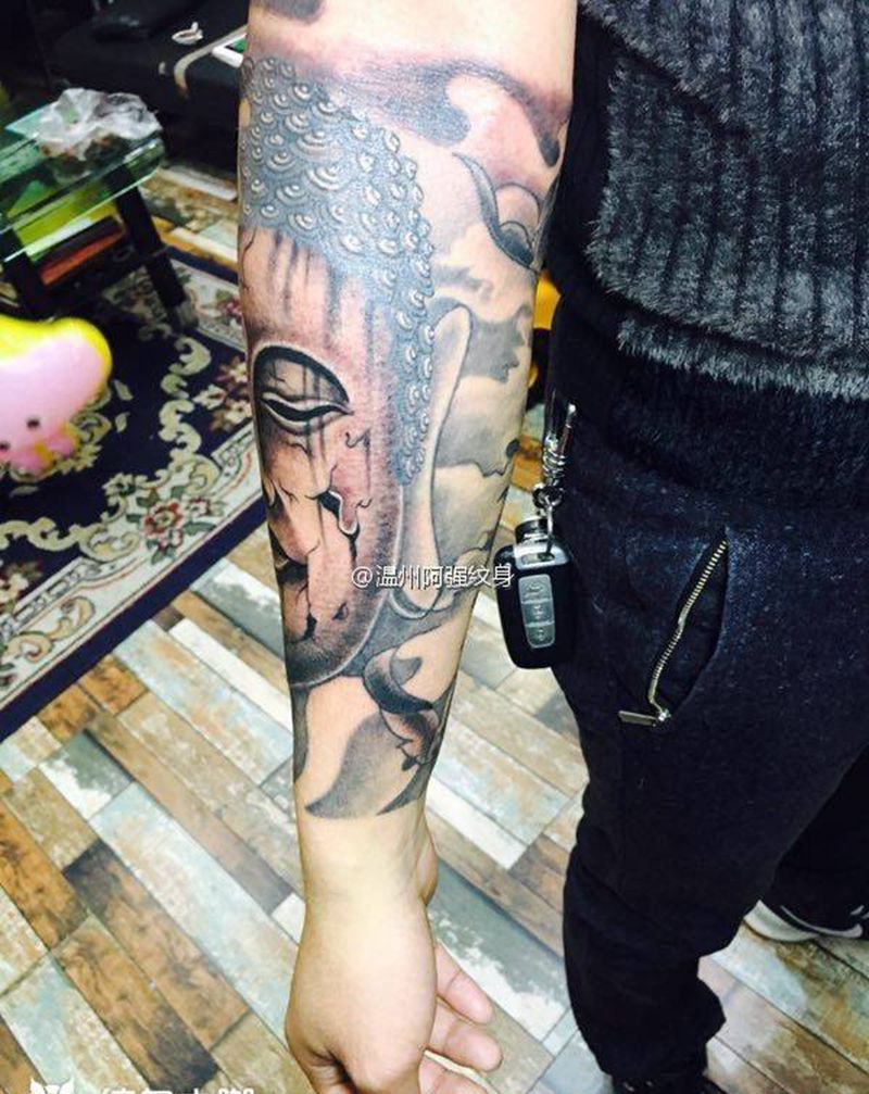 当前位置: 首页 >浙江省温州市纹身店-温州阿强纹身纹身图案>佛魔一念间纹身图片_成品手臂手部传统鬼神人物纹身图案