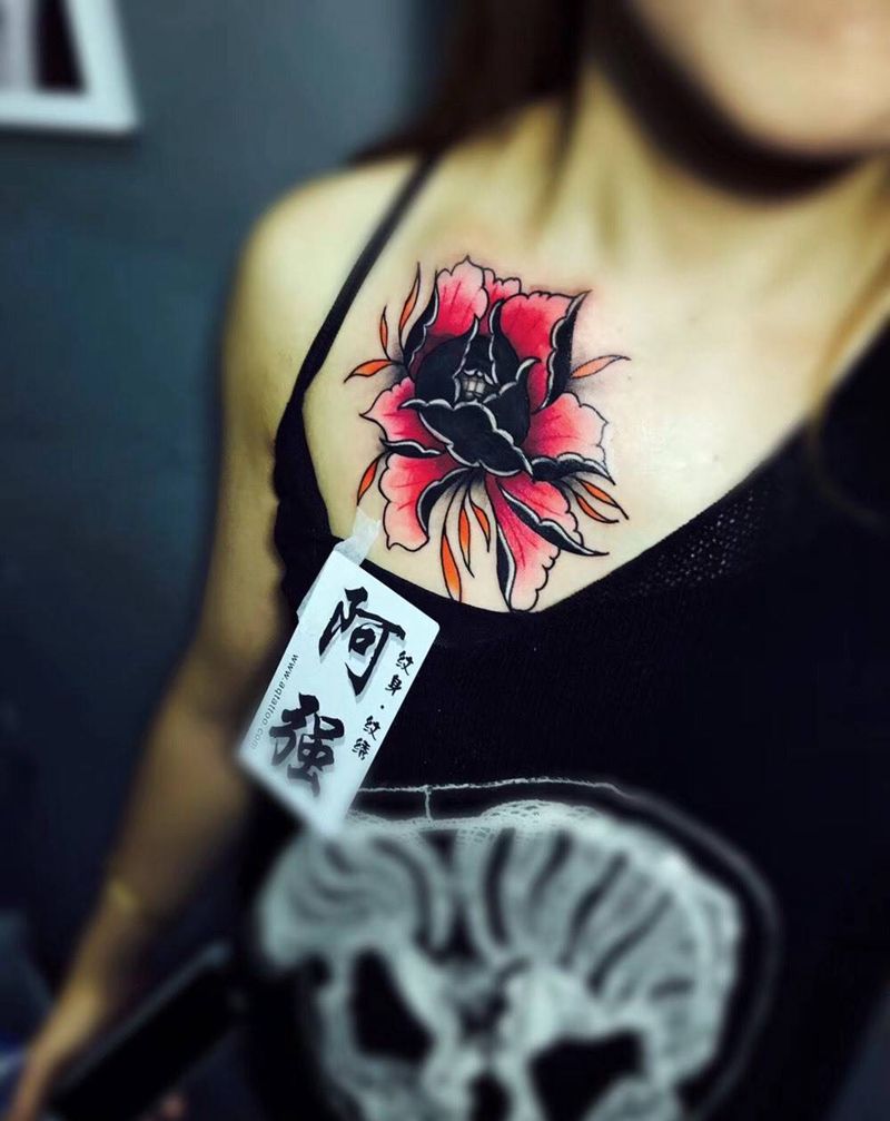 • 女性大花胸纹身_43张霸气漂亮的女性大花胸纹身图案作品